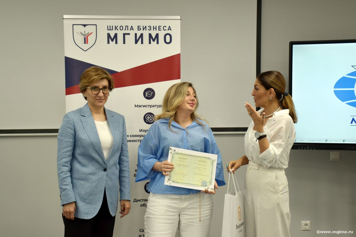 Директор Школы бизнеса и международных компетенций МГИМО А.М.Мирзоева и генеральный директор компании «Моситалмед» Е.В.Арцруни поздравили слушателей с окончанием программы и вручили выпускникам удостоверения о повышении квалификации МГИМО.