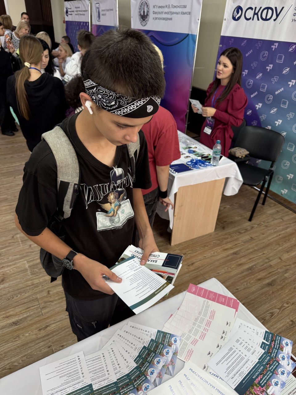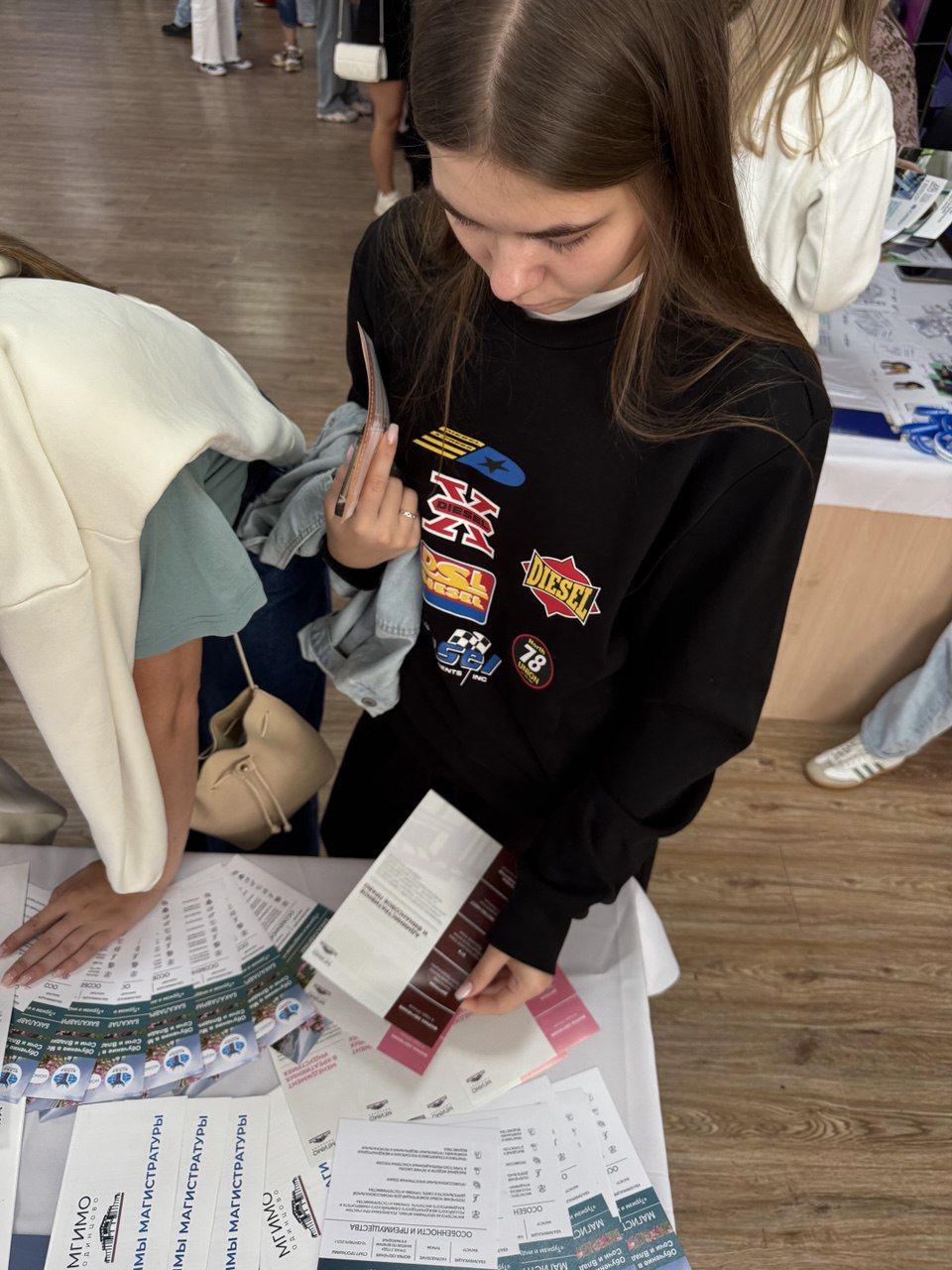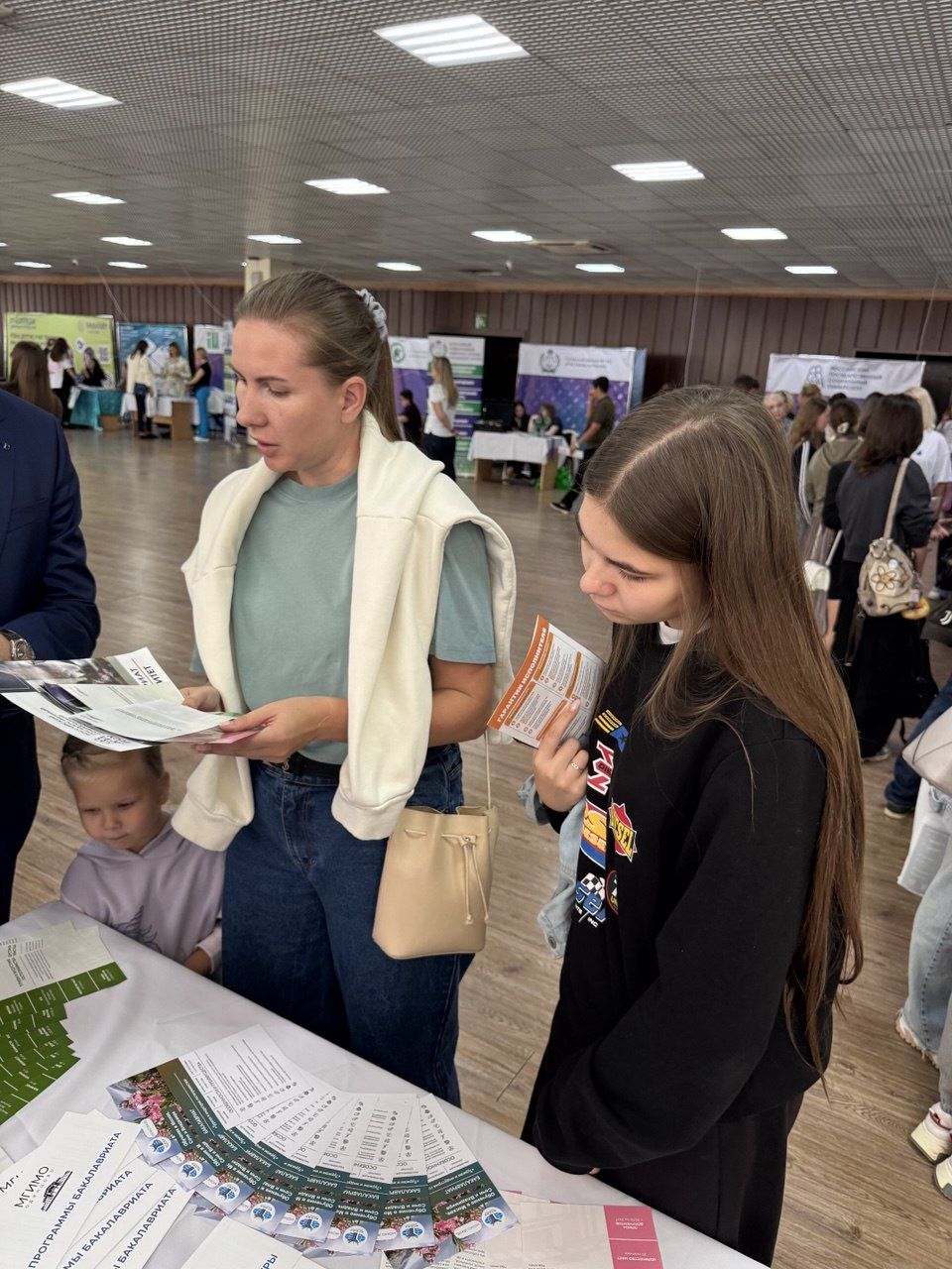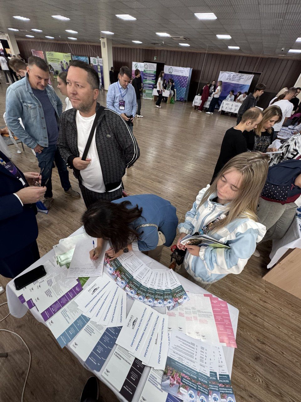 Посетители стенда активно интересовались особенностями приемной кампании 2026 года, возможностью получения дополнительных баллов при поступлении, условиями участия в олимпиадах и конкурсах МГИМО, а также задавали вопросы о проживании в кампусе МГИМО-Одинцово, студенческой жизни и инфраструктуре университета.