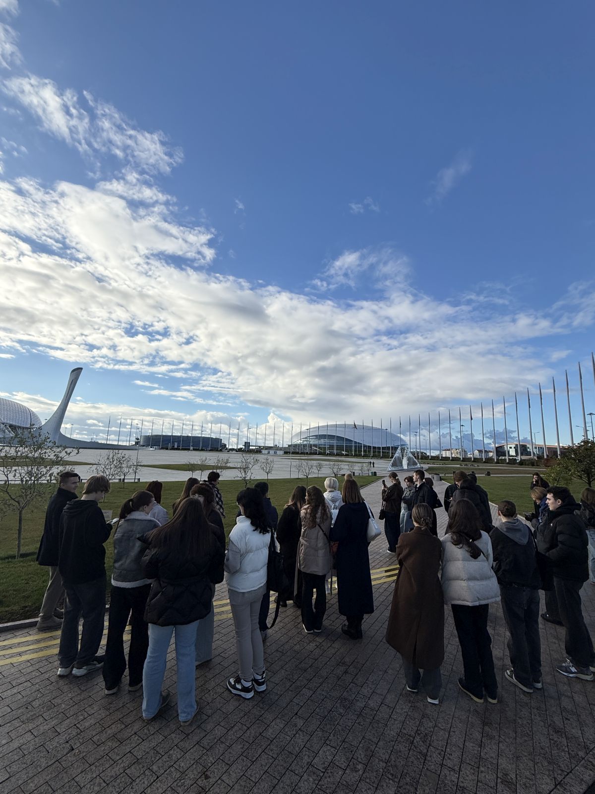 Олимпийские объекты были построены в соответствии с продуманной стратегией, которая обеспечивает их активное и эффективное использование на протяжении многих лет после Игр. Такое с олимпийскими объектами случается не часто в мировой практике! Планирование и расчет, умение прогнозировать — только такой подход позволяет эффективно справиться с все возрастающими потоками туристов и трансформировать «овертуризм» в новые возможности для развития города и региона. Стоя на Медальной площади, ребята узнали, как активно сейчас используется олимпийское наследие Сочи и трассы Формулы-1.